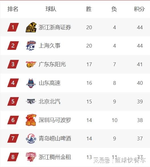 附:CBA积分榜最新排名